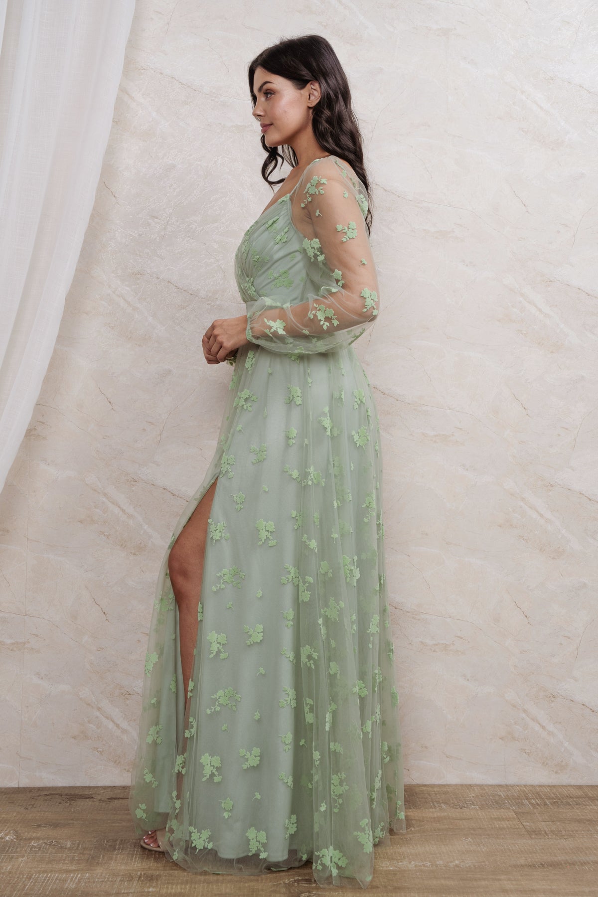 BURN OUT FLORAL SURPLICE MAXI DRESS I SAGE2